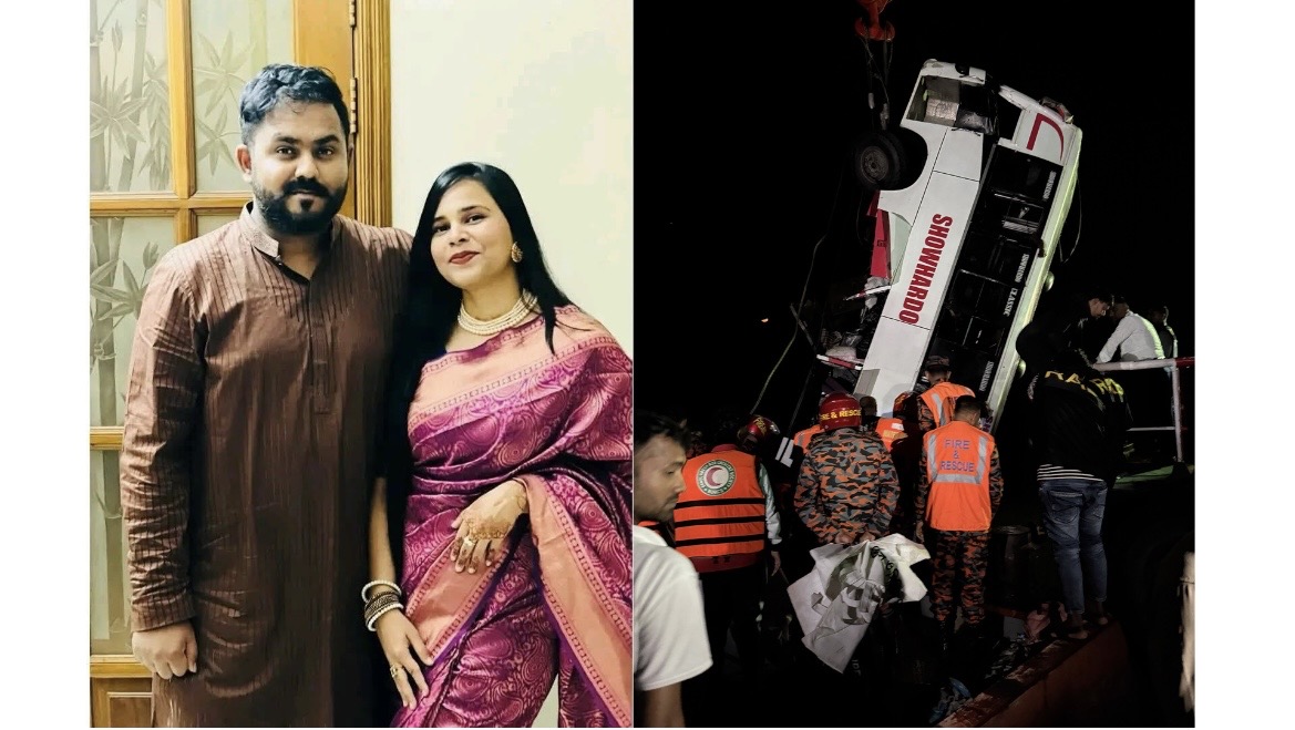 পদ্মায় বাসডুবি বিয়ের সাড়ে ৩ মাসেই চিরনিদ্রায় সৌম্য-অন্তী রাজবাড়ীর গোয়ালন্দ উপজেলার দৌলতদিয়া ঘাটে নিয়ন্ত্রণ হারিয়ে যাত্রীবাহী বাস নদীতে পড়ার ঘটনায় কাজী সাঈফ আহমেদ সৌম্য (৩০) ও ডা. ফাতেমাতুজ জহুরা অন্তী (২৭) নামে এক দম্পতির মর্মান্তিক মৃত্যু হয়েছে। একসঙ্গে জানাজা
